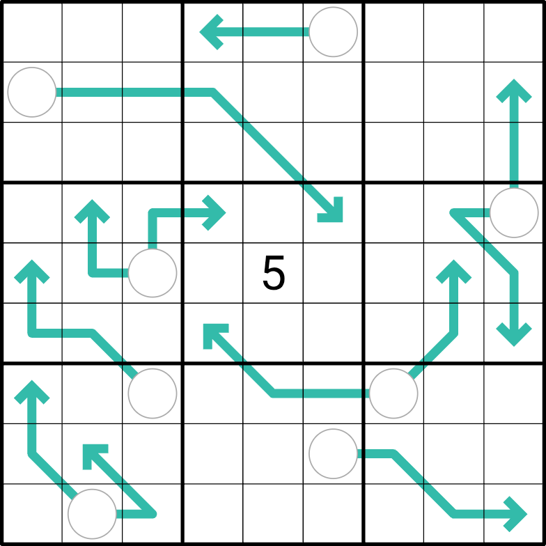 Note: Circle cells are on teal lines and must follow the Mod 3 rule. Obviously, circle cells are not part of an arrow since they are the sum of the other digits.
