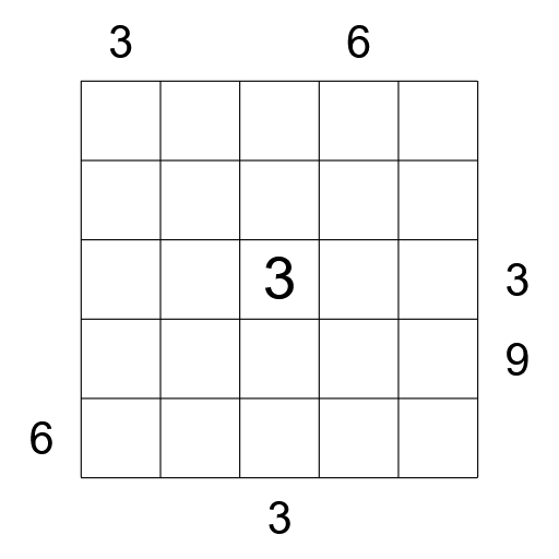 X-Sums: Numbers outside the grid indicate the sum of the first X digits, where X is the digit in the first cell from the direction of the clue.