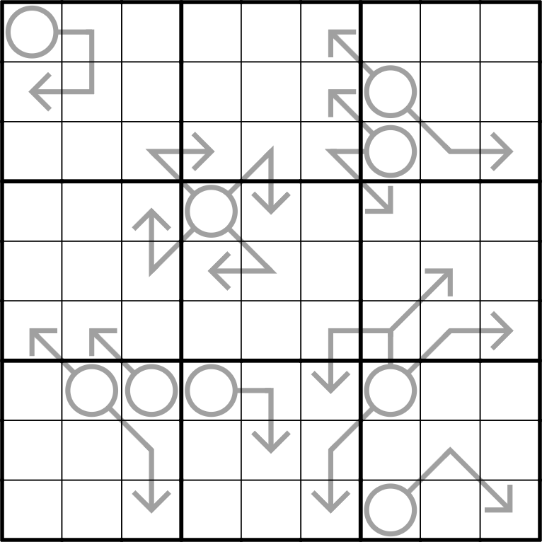 Digits along arrows must sum to the number in the circle.