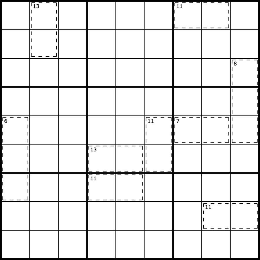 Numbers in cages sum to the small number in their corner and do not repeat within the cage.
