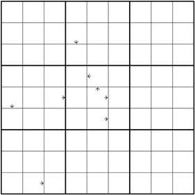There are 9 prophecy cells containing a set of the digits 1-9 and occurring once in each row, column, and box. A prophecy cell's digit is the position of the next box's prophecy cell (e.g., if Box 1's prophecy cell contains a 5, then Box 2's prophecy cell is in position 5). Box 9 wraps around to prophesying Box 1.