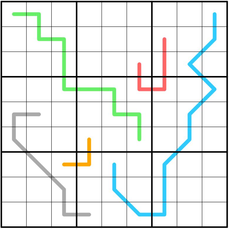 - Dutch Whisper: Adjacent digits along the orange line must differ in value by at least 4.