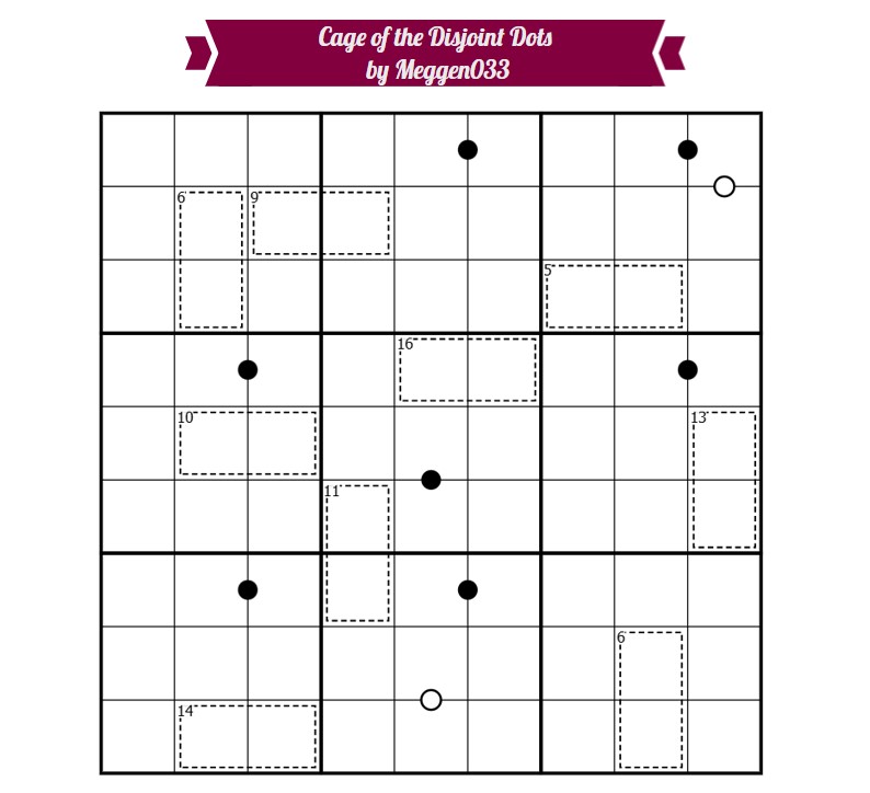 • Digits in a cage do not repeat and sum to the clue in the top left.