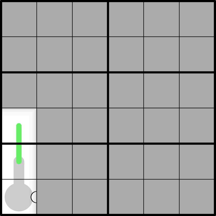 Es gelten die normalen Sudoku-Regeln. Platziere die Ziffern 1 bis 6 einmal in jeder Zeile, Spalte und jedem Kästchen.