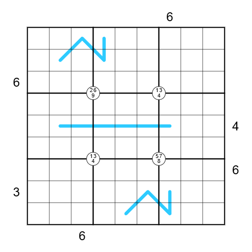 - Region Sum Lines: Box borders divide each blue line into segments with the same sum.