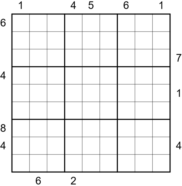 - First Hidden Skyscraper: digits in the grid represent skyscrapers of that height, with taller skyscrapers obscuring smaller ones. A clue outside the grid shows the first digit that cannot be seen from the clue's direction.