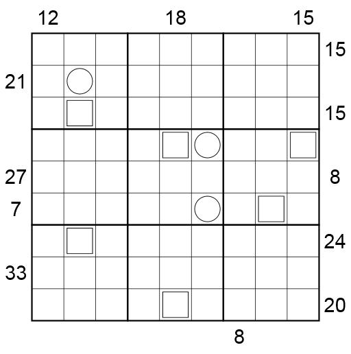 - Es gelten die normalen Sudoku-Regeln, d.h. jede Reihe, Spalte und 3x3-Region muss jede der Ziffern von 1 bis 9 genau einmal enthalten.