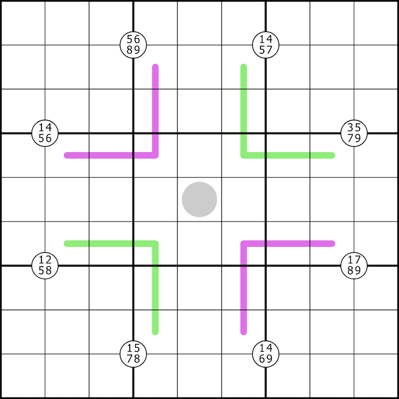 Normal sudoku rules apply. Green lines are german whispers and each number differs from its neighbor by at least 5. Pink lines are renban lines and digits are consecutive (no repeats) in some order. Quadruples provide numbers that must be represented in the surrounding four cells.