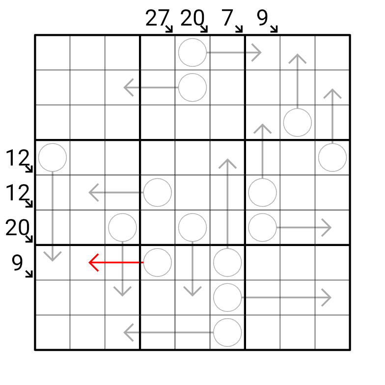 Arrows: Digits on an arrow sum to the number in the attached circle.