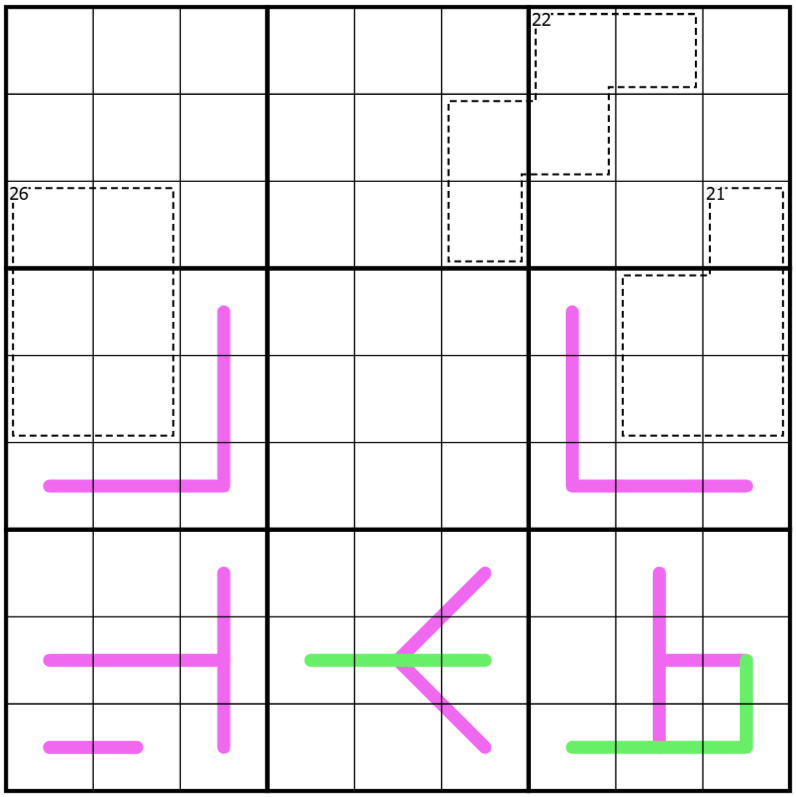 - Renban Lines: Digits along a purple line form a set of consecutive numbers in any order.