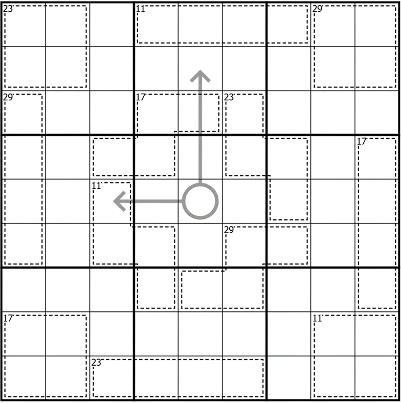 - Normal Sudoku rules apply, i.e. each row, column, and 3×3 region has to contain the digits from 1 to 9 once each.