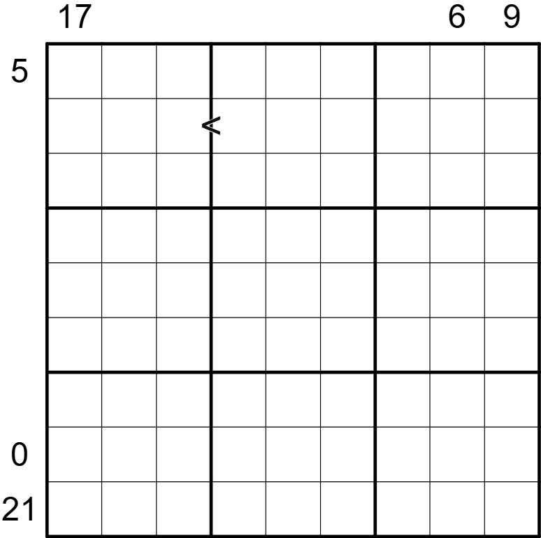 The inequality sign points to the smaller digit of the two cells it touches.