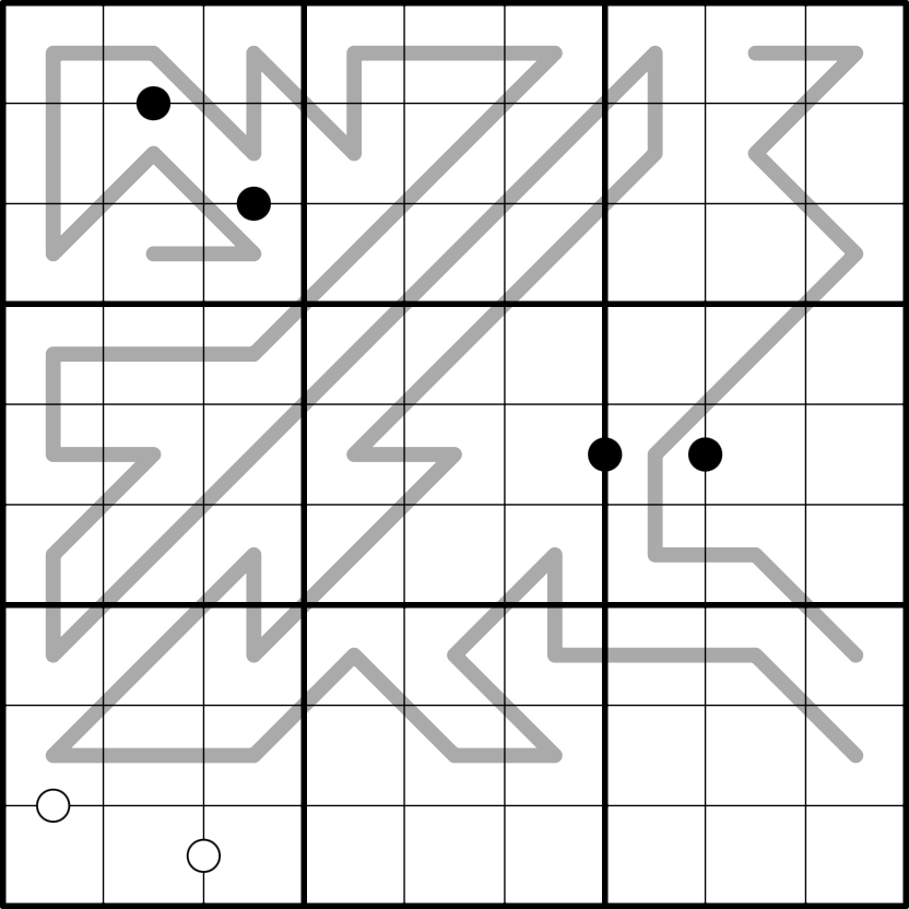 • Digits separated by a black Kropki dot are in a 2:1 ratio.