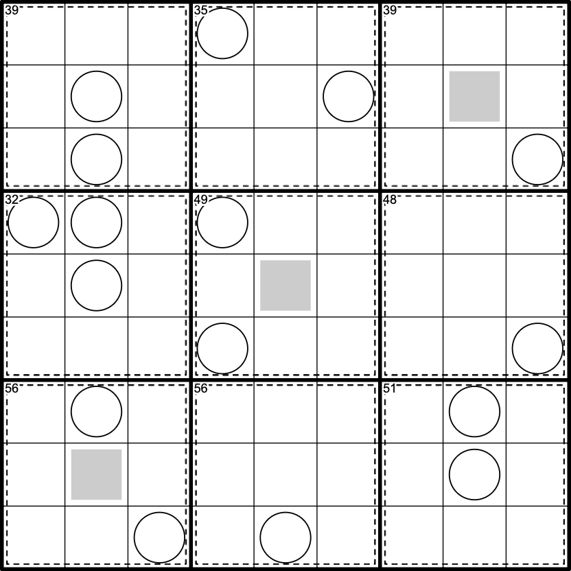 - In this puzzle, the set of cells with counting circles is exactly the set of cells which are petrified.