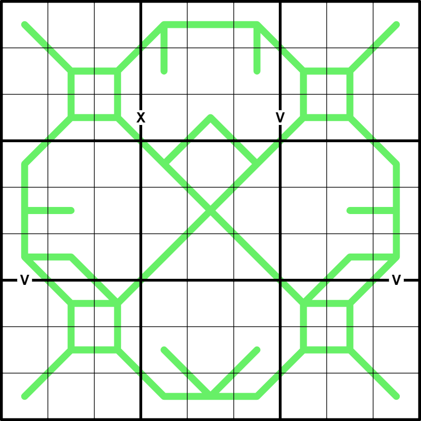 X/V: Digits in cells joined by an X sum to 10. Digits in cells joined by a V sum to 5. Not all Xs and Vs are given.