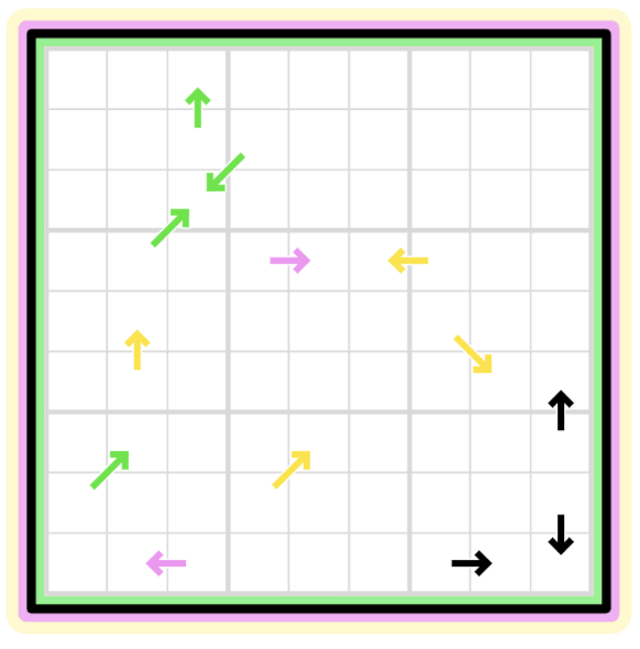 A really fun puzzle, I found it much easier to reason about than the prior differences puzzle, but that may just have been me getting better at remembering the column/row ordering of arrows :D