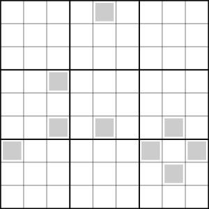 • No two rows, no two columns, and no two boxes may be missing the same digit.