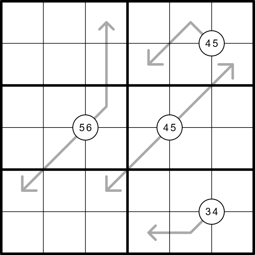 Modified Arrows: Digits on an arrow must sum to a value shown in the attached quad circle. Digits may repeat on arrows if allowed by other rules.