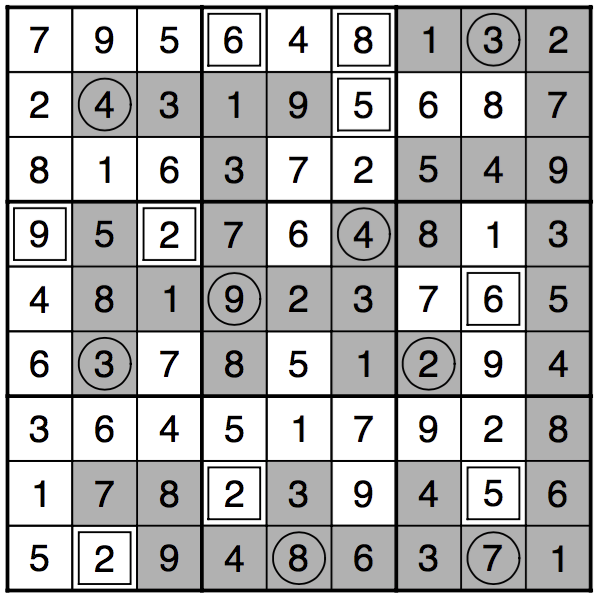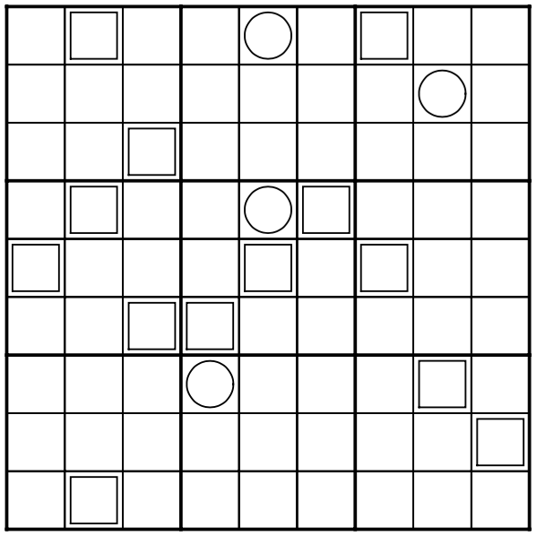 This example illustrates the circles and squares rule (but with no dark secrets):