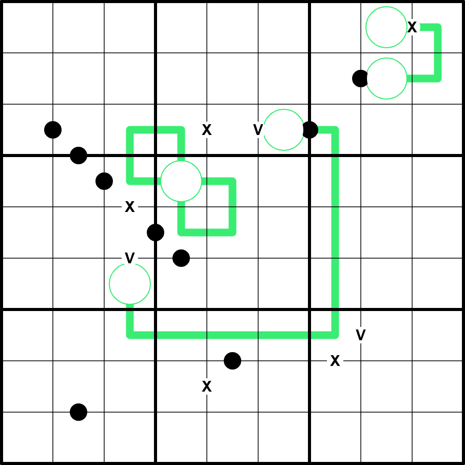 - XV sums - digits connected by V sum to 5; digits connected by X sum to 10. No negative constraint.