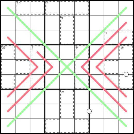 KILLER CAGES- Numbers in cages sum to the number in the top left corner of the cage.