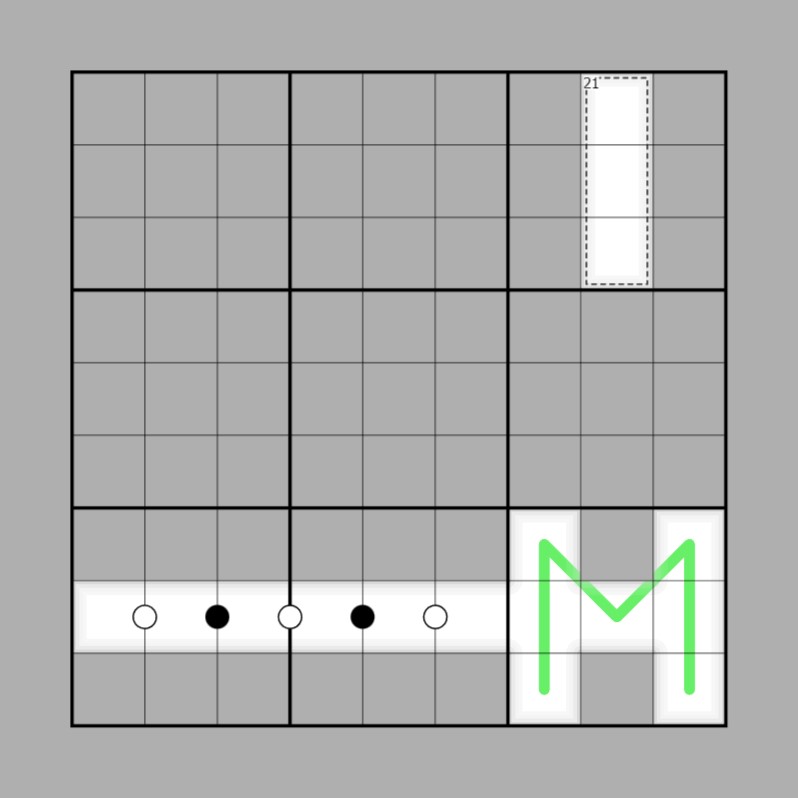 Renban: Digits along a purple line form a set of consecutive digits in any order.
