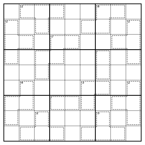 • Käfige: Die Ziffern innerhalb eines Käfigs dürfen sich nicht wiederholen und müssen die angegebene Summe ergeben.