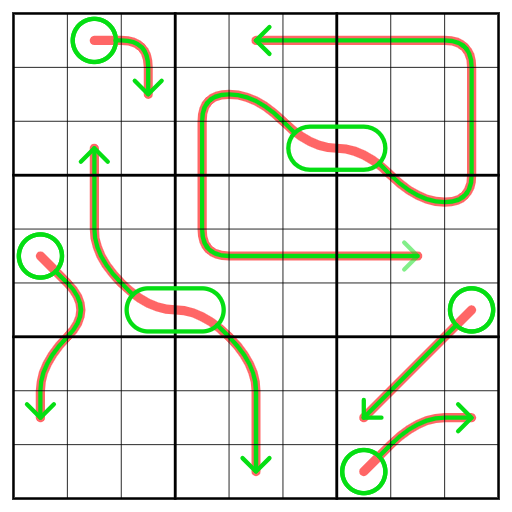 Arrows: Digits along an arrow must sum to the number in the attached circle or pill. Numbers in a pill are read from left to right.