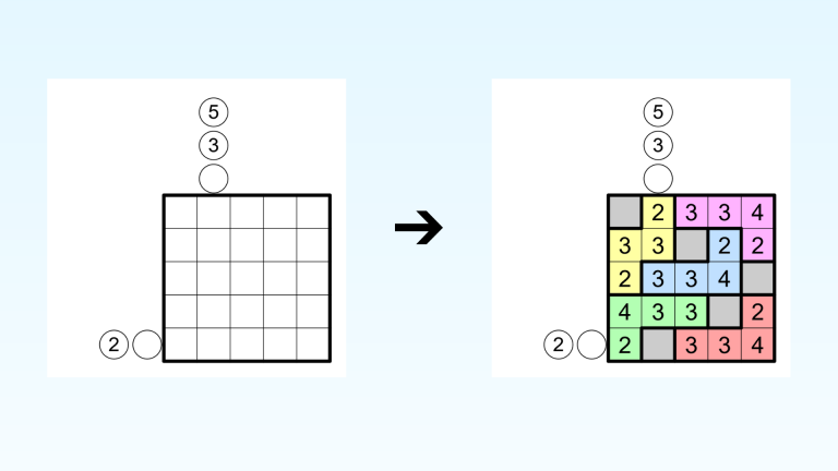 - The correct order of the clues is from left to right for the row and from top to bottom for the column. It's possible the same region can represent multiple groups in a row/column.