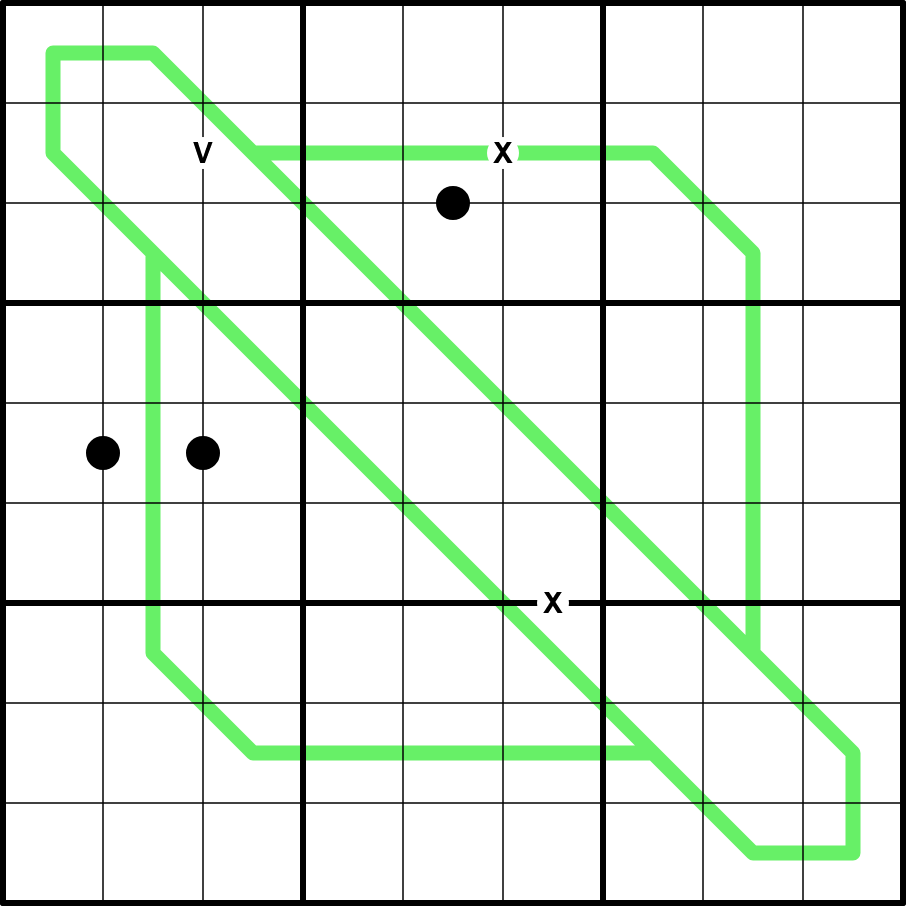 - German Whispers - neighboring digits on a green German Whisper line differ in value by at least 5.