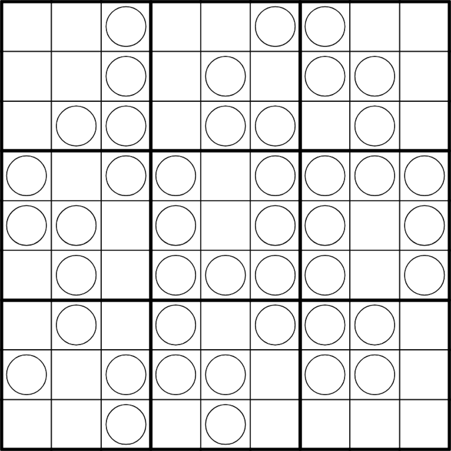 Any number in a circle can see the same number in two steps (only one of which may be diagonal, although both can be orthogonal) - numbers not in circles cannot.