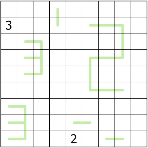 Every 1 sees exactly two 2s and three 3s in its row, column and box.