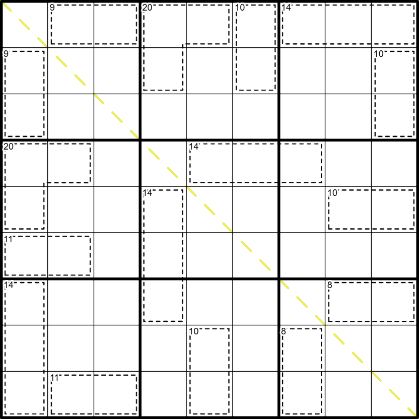 • Digits in a cage sum to the given value.