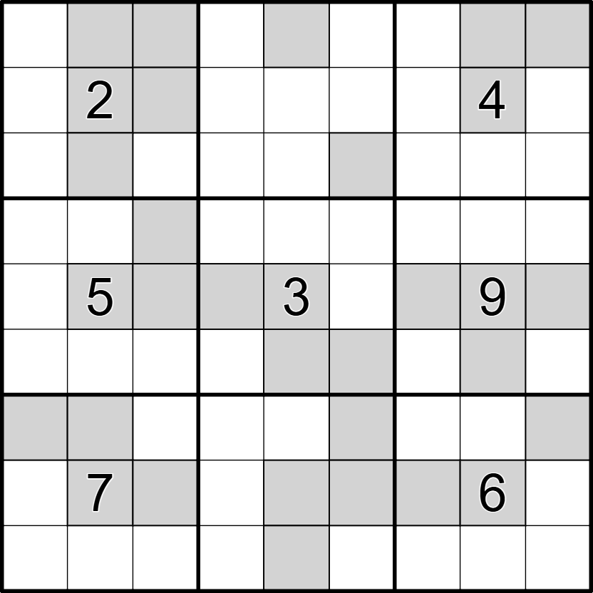 within their box are shaded. All the shaded cells are given. For example a valid box can look like this (note that only the digits inside the box are relevant for the shading):