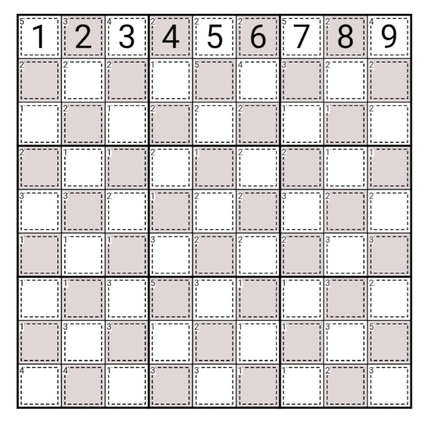 Cryptic sudoku based on chess moves. Quite hard I think but maybe not for the smart people on this site. Link to puzzle. sudoku pad There is a video solution on youtube channel "sudoku spot" if you get stuck. Normal sudoku rules apply. (1-9 in rows, columns and regions) This is a chess board with an extra queen. 1 and 9 are castles. 2 and 8 are knights. 3 and 7 are bishops (Bishops can be on black or white squares). 4 and 6 are queens. 5's are kings. Numbers in the corner of cages represents, moving one square at a time, the shortest number of moves it takes for the piece in that square to reach their nearest mate - another square with the same number (assuming they must move as they do in chess but one square at a time so for e.g. a bishop could change direction diagonally on its second or third move. A queen could move orthogonally then diagonally.) Numbers in the corners of the knights cages represent the shortest number of jumps to another square with the same number (assuming they must move as they do in chess)