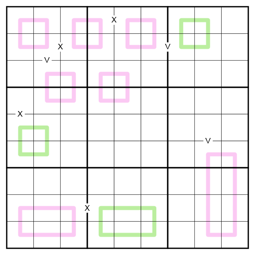 - Normal sudoku rules apply, i.e. each row, column, and 3x3 region has to contain the digits from 1 to 9 once each.