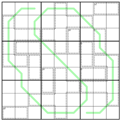 Cages mark "Vaults". Digits in a vault MAY repeat. Digits orthogonally adjacent to a vault may NOT be included within that vault.