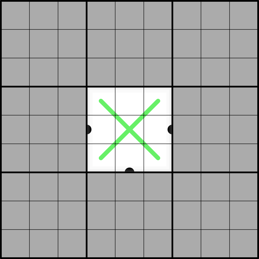 Black dots join cells whose digits are in a 1:2 ratio. Not all dots are given.