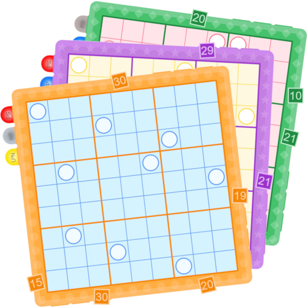 - Periodic Sums: A clue outside the grid indicates the sum of the first cell seen in its row or column and every Nth cell after, where N is the digit in the first cell.