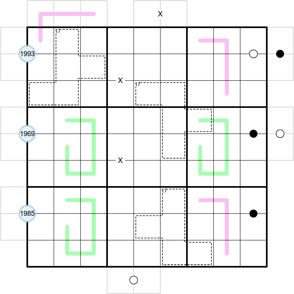 - Renban: digits on a pink line are a set of consecutive numbers in any order.