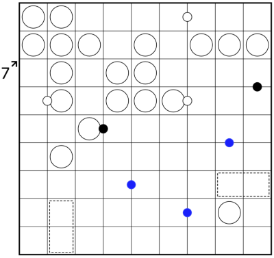 Mit gepunkteten Linien umrandete Käfige gehören nicht zu den Regionen und müssen ebenfalls eine Quadratzahl ergeben.