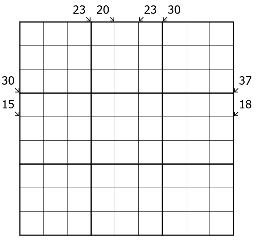 Little Killer: A clue outside the grid gives the sum of the digits along the indicated diagonal.