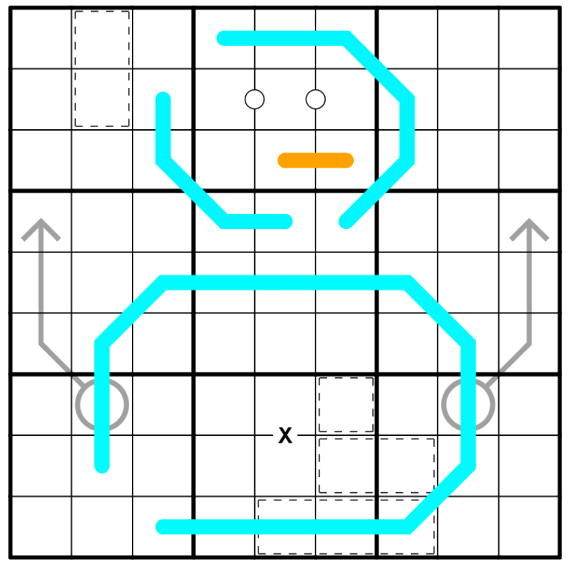 Adjacent digits on an orange Dutch Whispers line must differ from their neighbours on the line by at least 4. (This restraint is not needed to solve, but is definitely needed so the snowman has a face.)