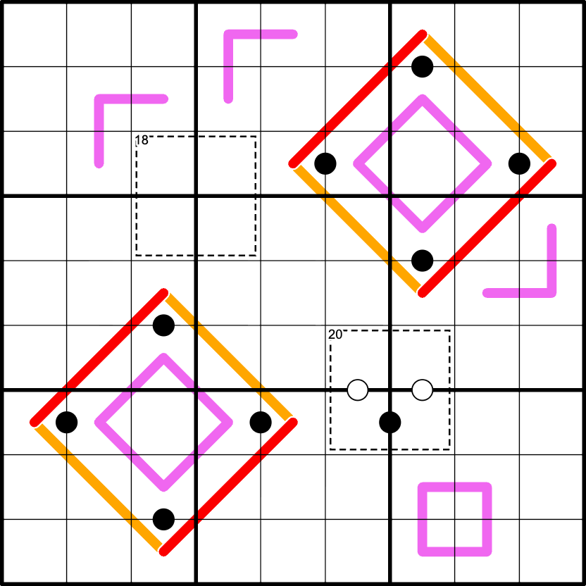 Renban lines - Digits on a pink line must form a non-repeating set of consecutive digits in any order.