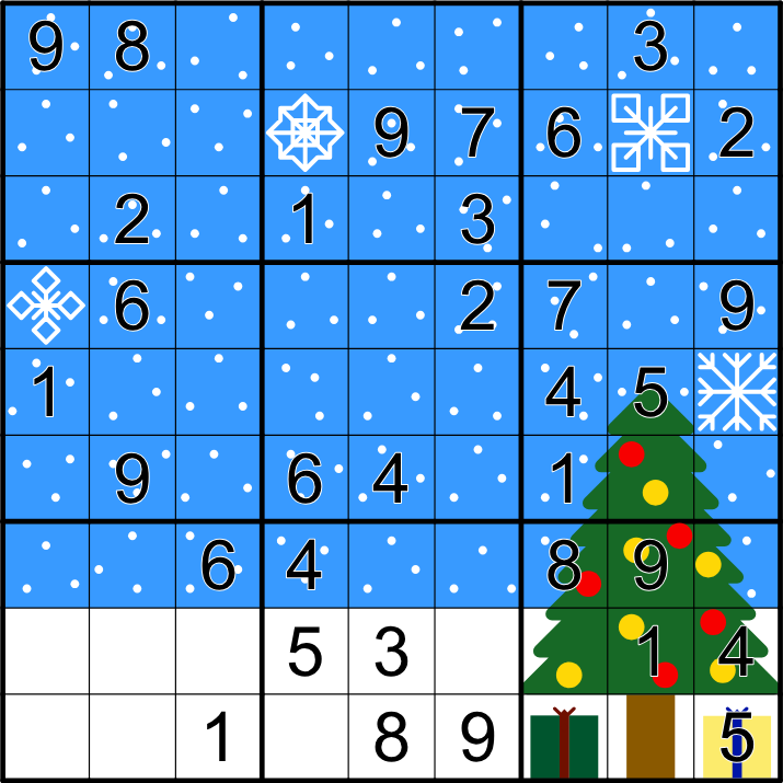 I got all excited that there was a special rule regarding the large snowflakes centered in cells. My brain didn't want to believe this was just a classic sudoku. I completed 4 boxes before I realized the one thing I had been missing. My wife does classics so I will have to share this with her!
