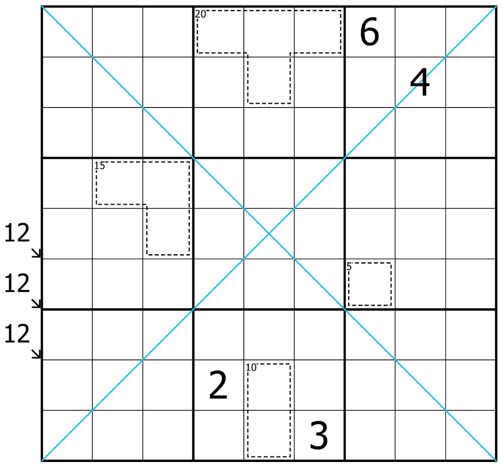 - Hauptdiagonalen. Ziffern dürfen auf den markierten Diagonalen nicht wiederholt werden.