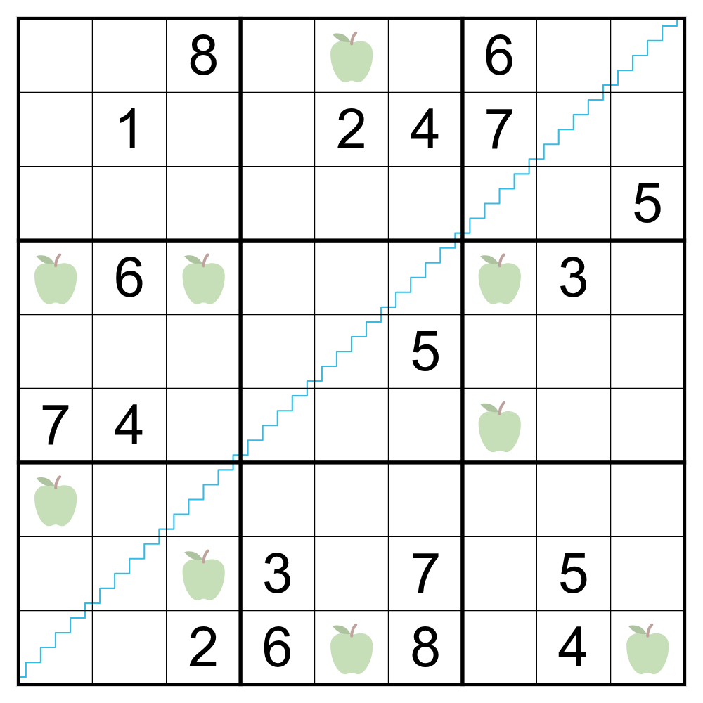 Well, i solved it. Took almost an hour. Liked using the apples and stairs. Had to check along the way. Coloured. And still couldn't bifurcate in my head at the end. Thought it would be easier than it did. But then i still have trouble with 1*. ;)