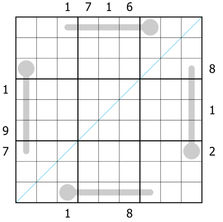 Diagonal - Digits cannot repeat along the marked diagonal.
