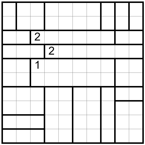 - A line of consecutive unshaded cells may not cross more than one bold border.