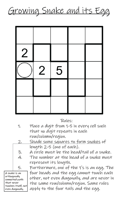 This is one of 12 disjoint puzzles I made this year with varying styles/difficulties themed around snakes and 2025.